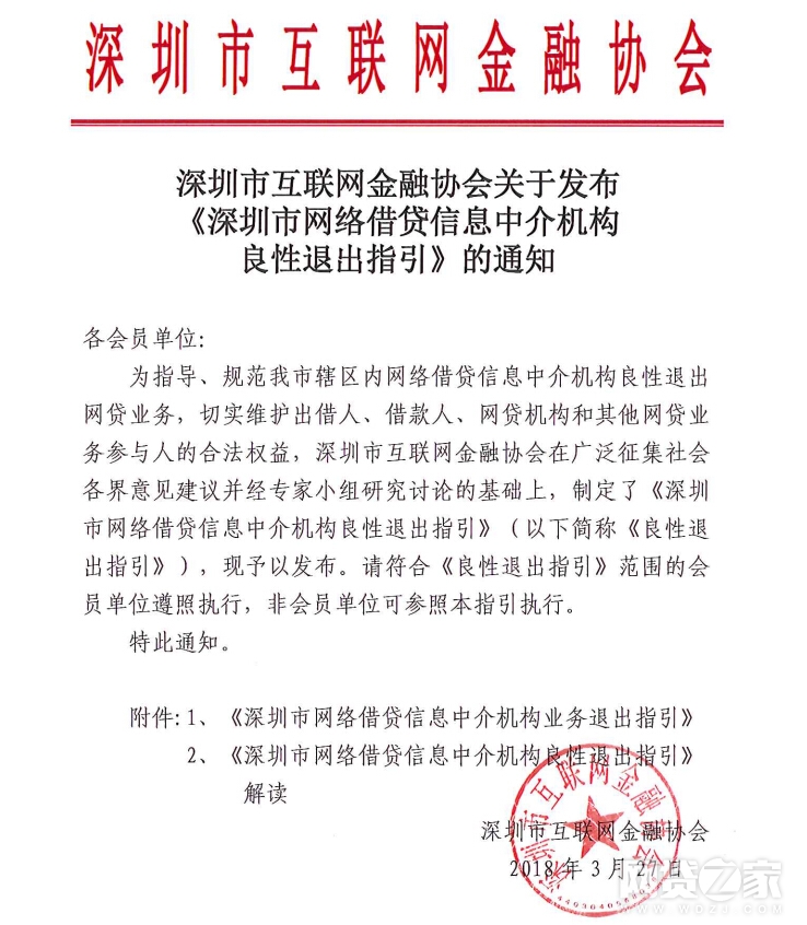 3月27日,深圳互联网金融协会(下简称“协会”)发布《深圳市网络借贷信息中介机构良性退出指引》(下简称“指引”)。指引共分为十一章、八十一条内容【点击“详情”查看指引全文】。据悉,此前在3月1日,协会曾发布《深圳市网络借贷信息中介机构良性退出指引(征求意见稿)》,共十一章、八十二条内容。