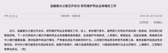 在金融委会议上,参会银行表示,虽然前几天同业市场出现一些波动,但目前已经明显好转,下一步对其他中小银行开展的同业业务规模将保持稳定,自觉维护市场秩序。