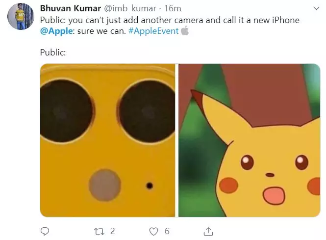 公众:你不能加个摄像头就叫新iPhone了苹果:我当然可以(图片来源:Twitter截图)