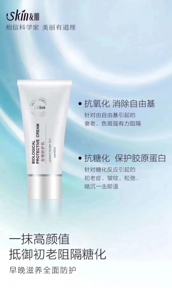 友肌生物防護乳,集合生物防曬和化學防曬成分,有效阻隔UVA和UVA,